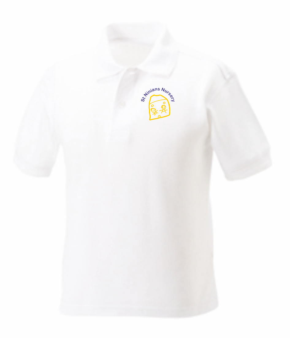 St Ninians Nursery School Poloshirt whiteEmbroidered with School Badge